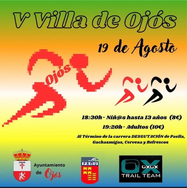 En poco más de un mes regresará la cita que volverá a llevarnos al corazón del Valle de Ricote en agosto. Así será el sábado 19, cuando tenga lugar la 5ª Carrera “Villa de Ojós”, sobre un recorrido aproximado de 6,75km. en la prueba absoluta, a partir de las 19:30h. con salida y meta en la Avenida del Río, junto a la pista polideportiva. Antes, a partir de las 18:30h., tendrán lugar las pruebas infantiles no competitivas, con diferentes distancias según la categoría.